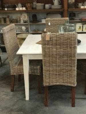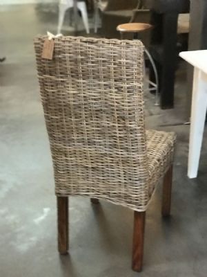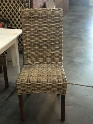This great woven rattan dining chair measures 40" high. There are 4 available. Call store to purchase (205) 540-1868